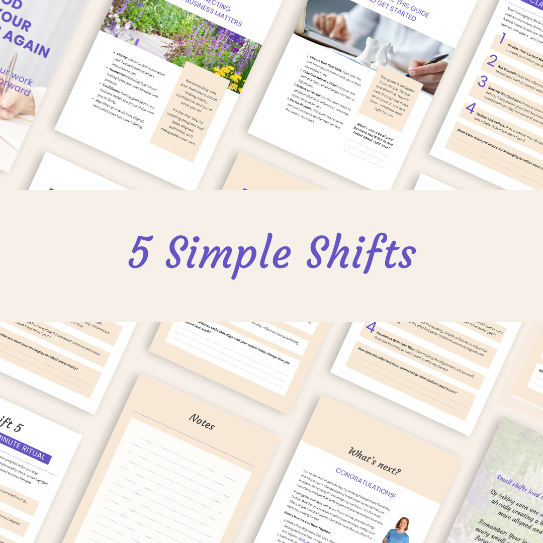 I help solopreneurs like you build aligned, values-driven businesses - at your own pace and on your own terms.